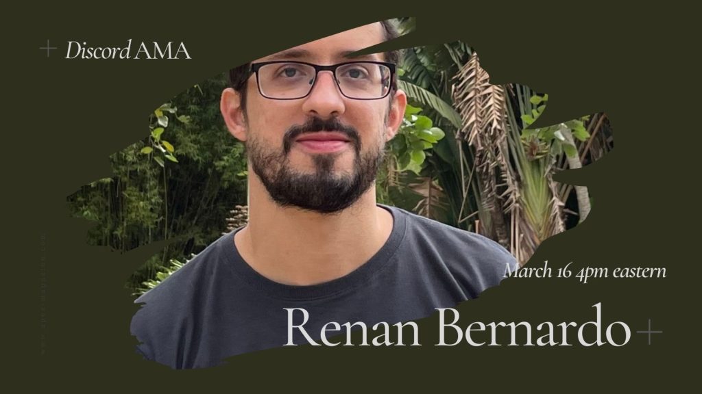 As part of our celebration of Robotic Ambitions, we’re hosting an AMA with anchor author Renan Bernardo at 4pm eastern on March 16th. Join us on our Discord to ask the author all your burning questions!