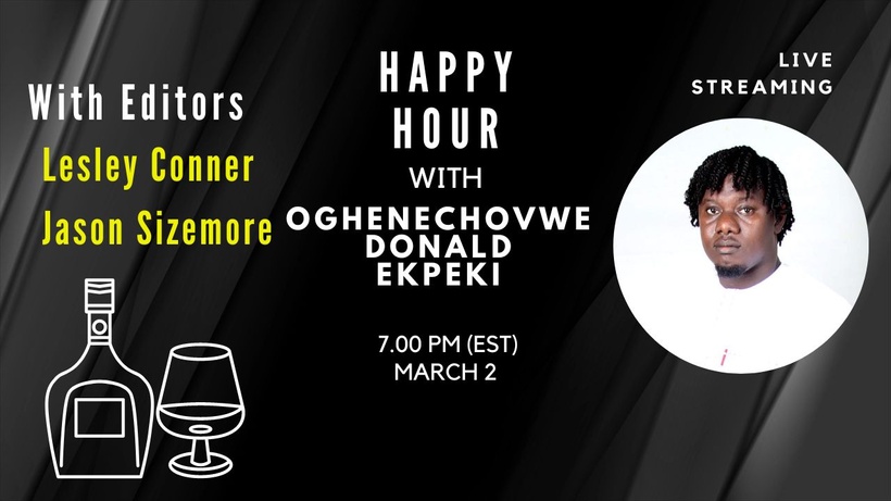 First up, Oghenechovwe Donald Ekepi, one of our anchor authors for Robotic Ambitions, will join Jason and Lesley for a livestreamed Happy Hour chat on March 2 at 7pm eastern time.